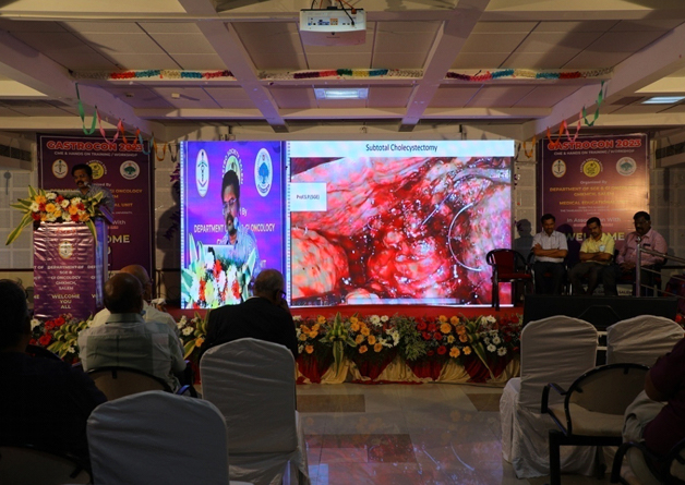 This is state level, one day Gastroenterology conference with Surgical, Endoscopic and Laparoscopic workshop. The conference theme was Biliary Tract injuries and prevention and management. There was vast discussion on Biliary system anomalies, Biliary injuries, preventive measures including newer imaging technologies ICG flourescence, MRI 3D Reconstruction and management strategies. There were about 350 members. There was a live endoscopic and laparoscopic training for Post Graduates. The Tamilnadu Dr. M.G.R. Medical University had granted 10 credit hours for the conference.
