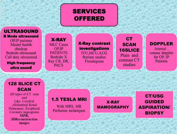 We render seperate ULTRASOUND services for Out patients, Inpatients, Antenatal patients , doppler studies, superspeciality IN & OUT patients , emergency - trauma care services and USG guided biopsy - procedures.