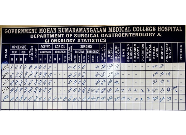 Department of Surgical Gastroenterology and GI Oncology, OP 146, 2nd Floor, PMSSY Block, Government Mohan Kumaramangalam Medical College Hospital, Salem - 636001.