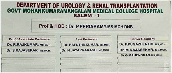 DEPARTMENT OF UROLOGY 3rd FLOOR PMSSY BLOCK GMKMCH,SALEM-1